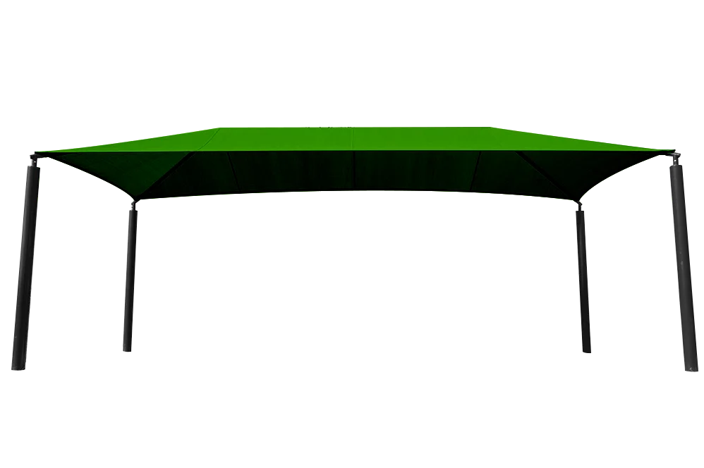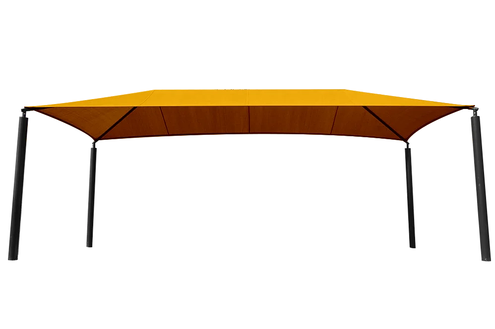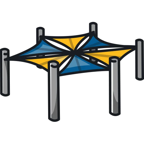 A series of hip end shades that share posts – are a great solution for sports complex seating and parking lots. 4 Post Dome shades are an economical way of shading a very large area. To ensure uniform tension throughout your Standard Hip Shade canopy, we may design a 4 Post Dome should the length to width ratio of your shade structure require it.