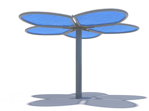 Modular shade structures with unique design qualities that provide a contemporary aesthetic