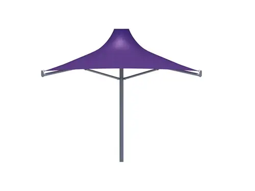 Available in three different sizes up to 20′ x 20′, the Twilite 4-Point structure features a single column design with an elegantly shaped roof system.